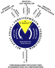 Einen Investmentfonds kann man sich als großen Topf vorstellen, in den viele Anleger verschieden hohe Beträge einzahlen. Dieser Topf wird von einem Fondsmanagement nach dem Grundsatz der Risikomischung verwaltet, d.h. das Geld wird entsprechend vorher festgelegter Anlagegrenzen in viele verschiedene Wertpapiere investiert (Aktien, festverzinsliche Wertpapiere, Geldmarktpapiere, etc.). Eine weitere Art von Investmentfonds stellen die Offenen Immobilienfonds dar, die in Immobilien (Büro-, Lager-, Wohngebäude etc.) investieren. Kauft ein Anleger Anteile eines Investmentfonds (vom Gesetzgeber auch als "Sondervermögen" bezeichnet), richtet sich seine Beteiligung an diesem Topf nach der Höhe seiner Einlage.