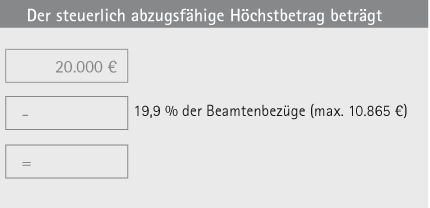 Zur Berücksichtigung des Wertes der Pension, die der Beamte vom Staat erhält, wird vom steuerlich abzugsfähigen Höchstbeitrag ein fiktiver Beitrag zur gesetzlichen Rentenversicherung abgezogen.