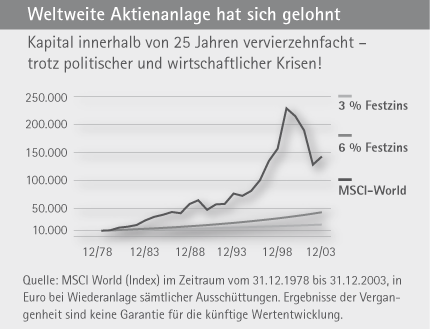 Anleger, die sich in den letzten Jahrzehnten längerfristig an Gewinn und Wachstum erfolgreicher Unternehmen beteiligt haben, gehören heute eindeutig zu den Gewinnern. Und wie beteiligt man sich an solchen Unternehmen? Mit Aktien. Als Aktionär sind Sie Miteigentümer des Unternehmens. Mehr zum Thema "Eine Rente, die man auch vererben kann":